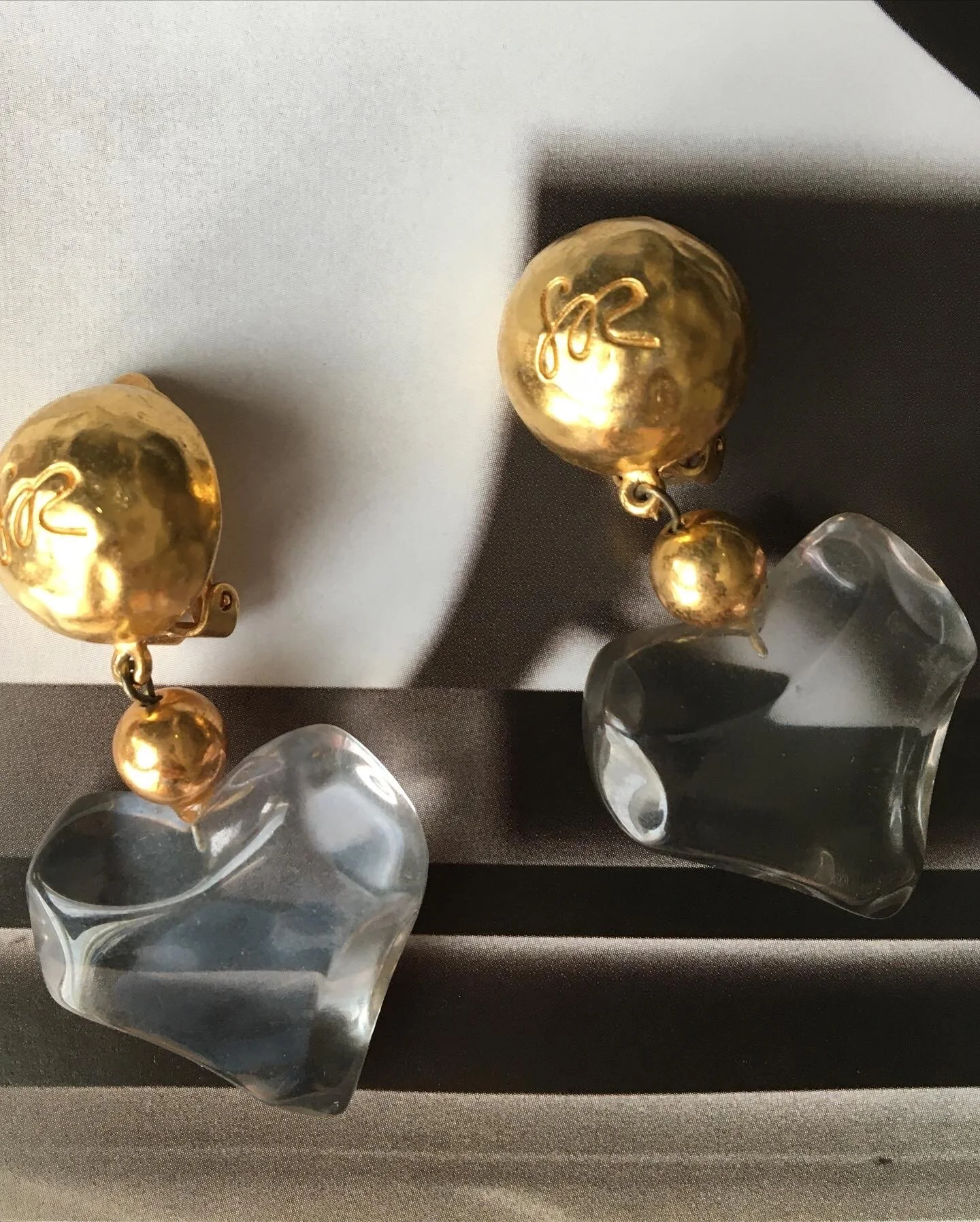 Givenchy Green Rhinestone Semi Hoop Earrings